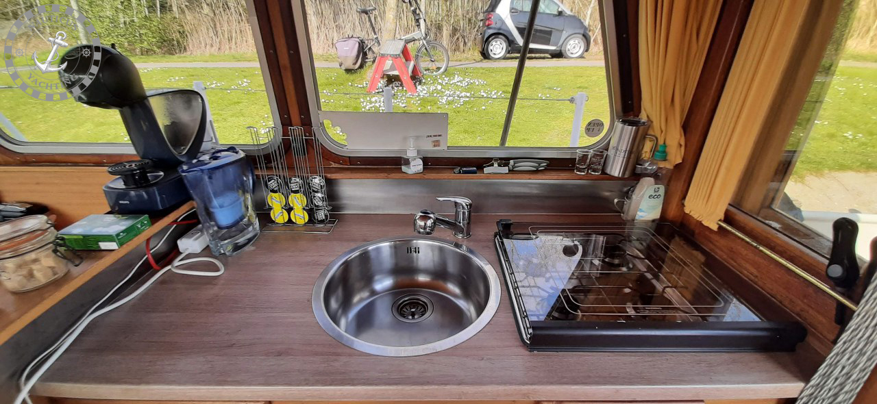 - Gasbun : voor 2 grote flessen, goed bereikbaar, met gekeurde afvoer