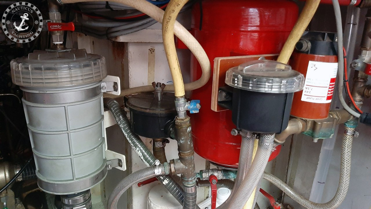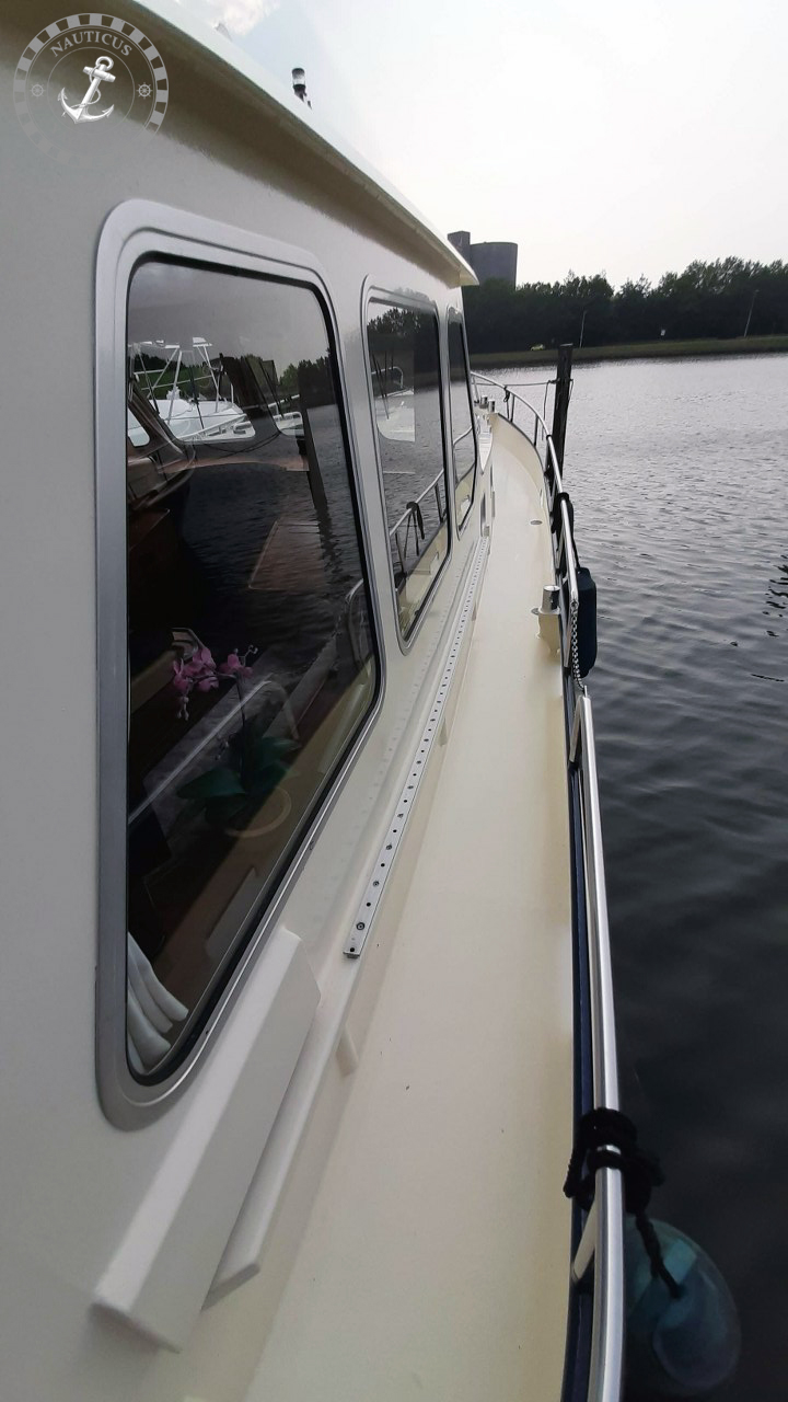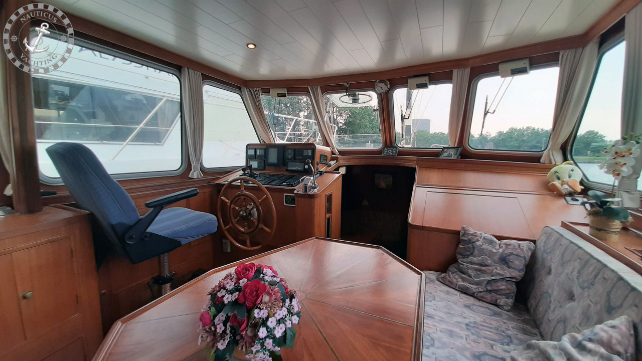 - Hydraulische besturing met dubbele bediening (in stuurhuis + in de kuip voor varen onder zeil en manoeuvres)