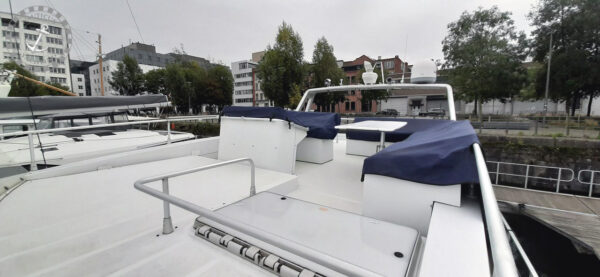 - LOA 19,60m (64 ft) – beam 5,15m (16,9 ft) – draft : 1,45m (4,75 ft)- clearance height 4,92m (16 ft)