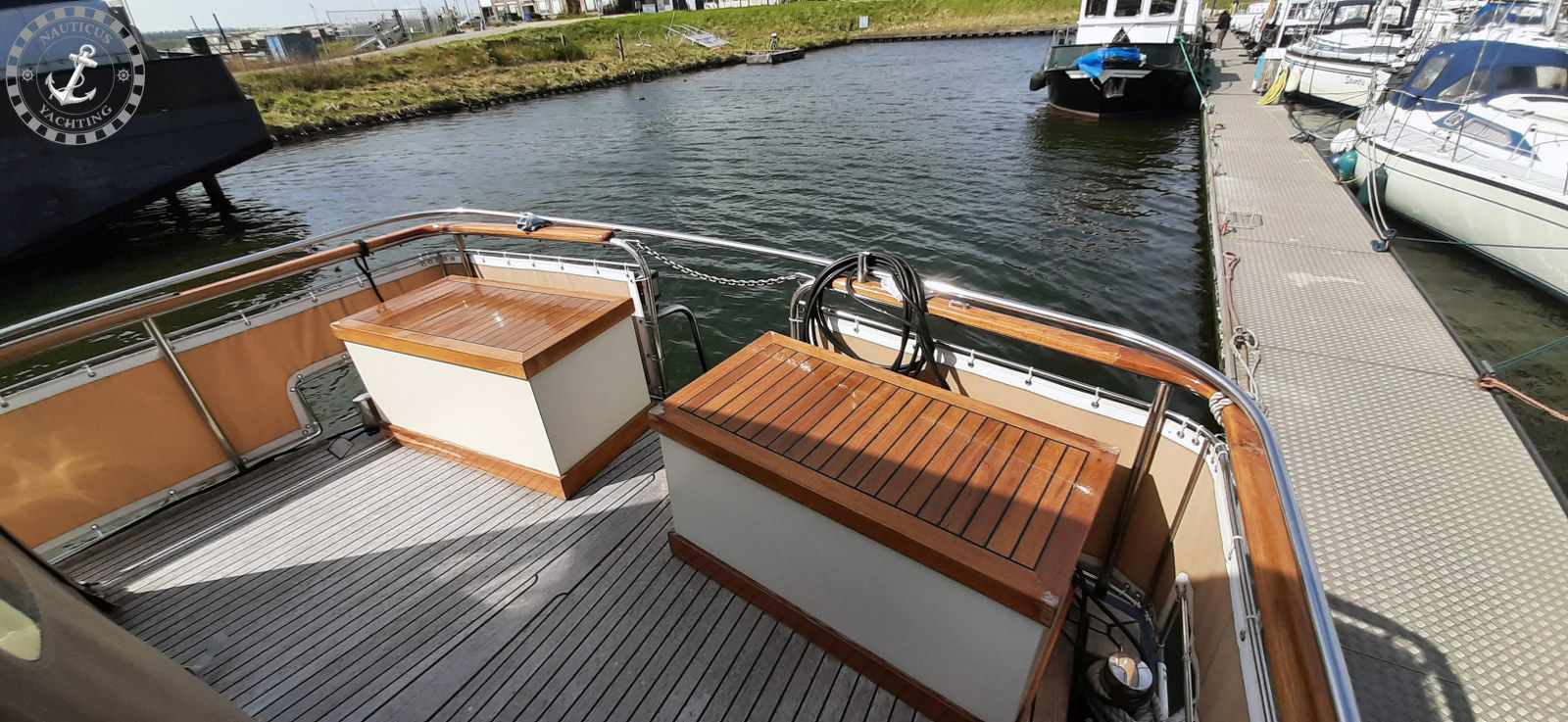 Moeilijk van nieuw te onderscheiden is dit prachtige motorjacht voorzien van teak dekken en gangboorden, een prachtig interieur met lederen zitbekledingen, verwarming, twee kajuiten met elk hun eigen badkamer, dubbele besturing binnen en buiten, een 200pk krachtige motor, boeg- én hekschroef, 220V generator en nog veel meer.