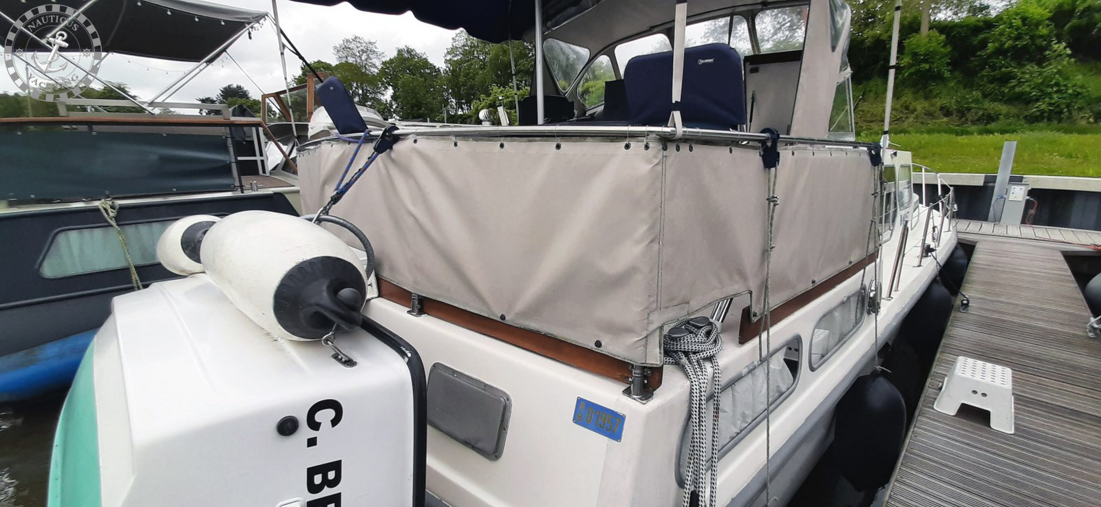 - Materiaal, kleuren : Glasvezel – Polyester, witte romp & opbouw, antislip gangboorden en dekken