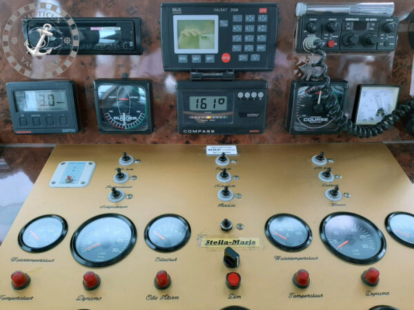 - Meetinstrumenten op de binnen stuurstand : 2x toerental, motorindicatie, dieptemeter, diesel- & watertankmeter, voltmeter, ampèremeter, temperatuurmeter, oliedrukmeter, startslot.