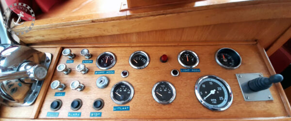 - Meetinstrumenten op stuurstand : Alle motorindicaties, dieptemeter, voltmeter start- & lichtaccu apart, temperatuurmeter, oliedrukmeter, bedrijfsuren teller, startslot.