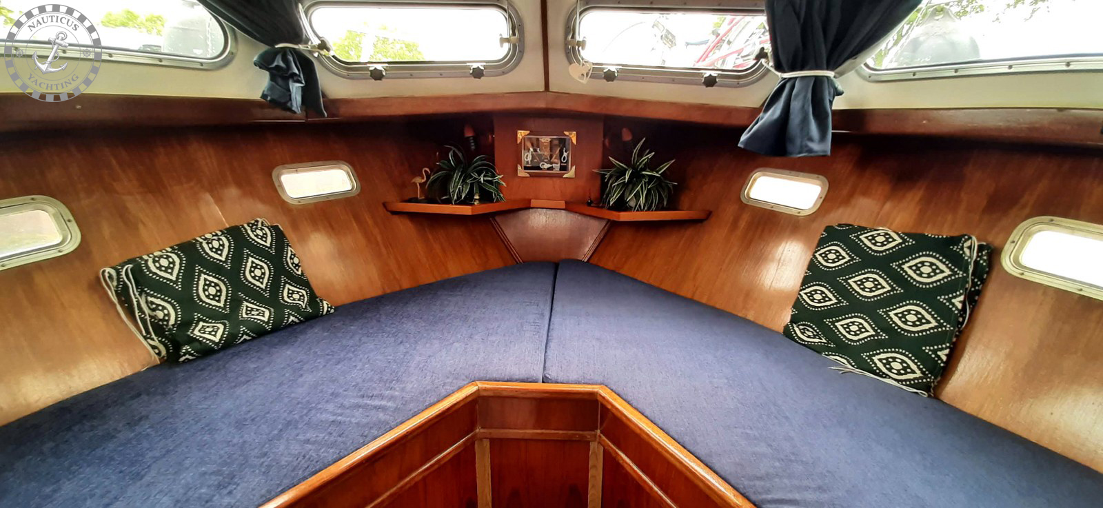 De drie ruime kajuiten, het V-bed in de voorpiek en de tot dubbel bed omvormbare dinette zorgen voor slaapgelegenheid tot wel 8 opvarenden.